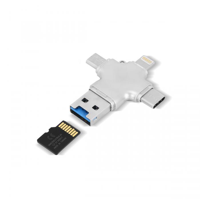 4’ü 1 arada çoklu bağlantı: USB-A, Type-C, Micro USB, Lightning